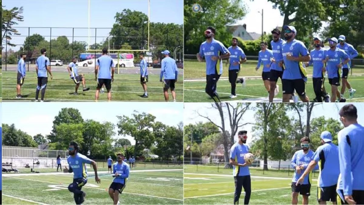 ICC T20 World Cup 2024: आईसीसी टी20 वर्ल्ड कप के पहले मैच से पहले टीम इंडिया के पहले ट्रेनिंग सेशन का वीडियो सामने आया है। टूर्नामेंट 1 से 29 जून तक वेस्टइंडीज और अमेरिका में खेला जाएगा। मेन इन ब्लू 1 जून को न्यूयॉर्क के नासाउ काउंटी इंटरनेशनल क्रिकेट स्टेडियम में बांग्लादेश के साथ अपना एकमात्र अभ्यास मैच भी खेलेगा। भारतीय क्रिकेट कंट्रोल बोर्ड (BCCI) ने अपने आधिकारिक सोशल मीडिया हैंडल पर अमेरिका में अपने पहले प्रशिक्षण सत्र की एक झलक शेयर की।