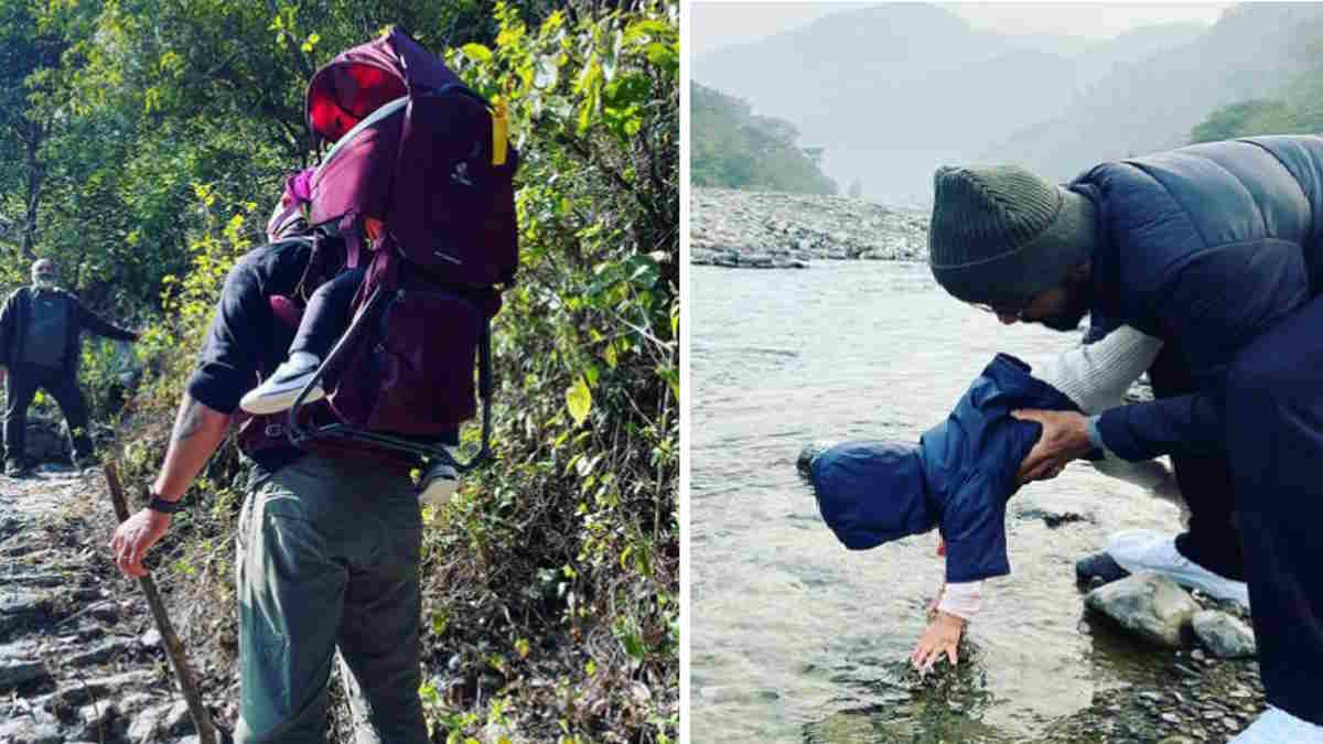 बुधवार को विराट कोहली और अनुष्का शर्मा ने सोशल मीडिया पर कुछ तस्वीरें पोस्ट की हैं, जिसमें कोहली और अनुष्का के साथ-साथ उनकी बेटी भी इस ट्रैक पर उनके साथ नजर आ रही है। अनुष्का द्वारा पोस्ट की गई फोटोज में विराट कोहली अपनी बेटी वामिका को एक बेबी कैरियर में अपने कंधों पर बिठाए हुए नजर आ रहे हैं। वामिका को लेकर कोहली पहाड़ चढ़ते हुए नजर आ रहे हैं। साथ ही एक फोटो में विराट कोहली बेटी वामिका को लेकर पानी से खेलते हुए नजर आ रहे हैं।