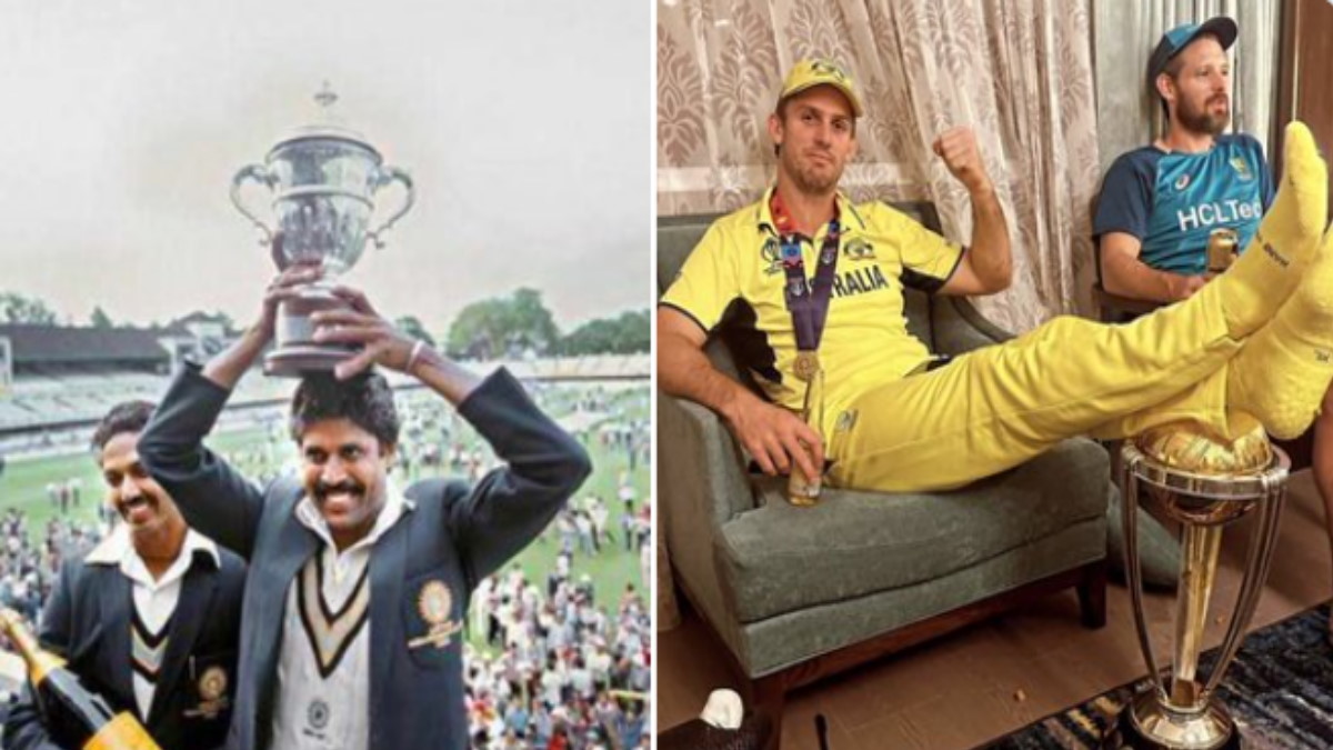 Mitchell Marsh put his foot on trophy: वर्ल्ड कप जीतने के बाद ऑस्ट्रेलिया के कप्तान मिशेल मार्श की एक तस्वीर वायरल हो रही है, जिसमें उन्होंने ट्रॉफी के ऊपर पैर रखा हुआ है। तस्वीर सामने आते ही लोगों ने उन्हें बुरी तरह से ट्रोल करना शुरू कर दिया। यूजर्स मिशेल से काफी नाराज नजर आ रहे हैं। इस बीच लोग कपिल देव की फोटो भी शेयर कर रहे हैं, जिसमें दिग्गज क्रिकेटर ने अपने सिर पर वर्ल्ड कप की ट्रॉफी पकड़ी हुई है।