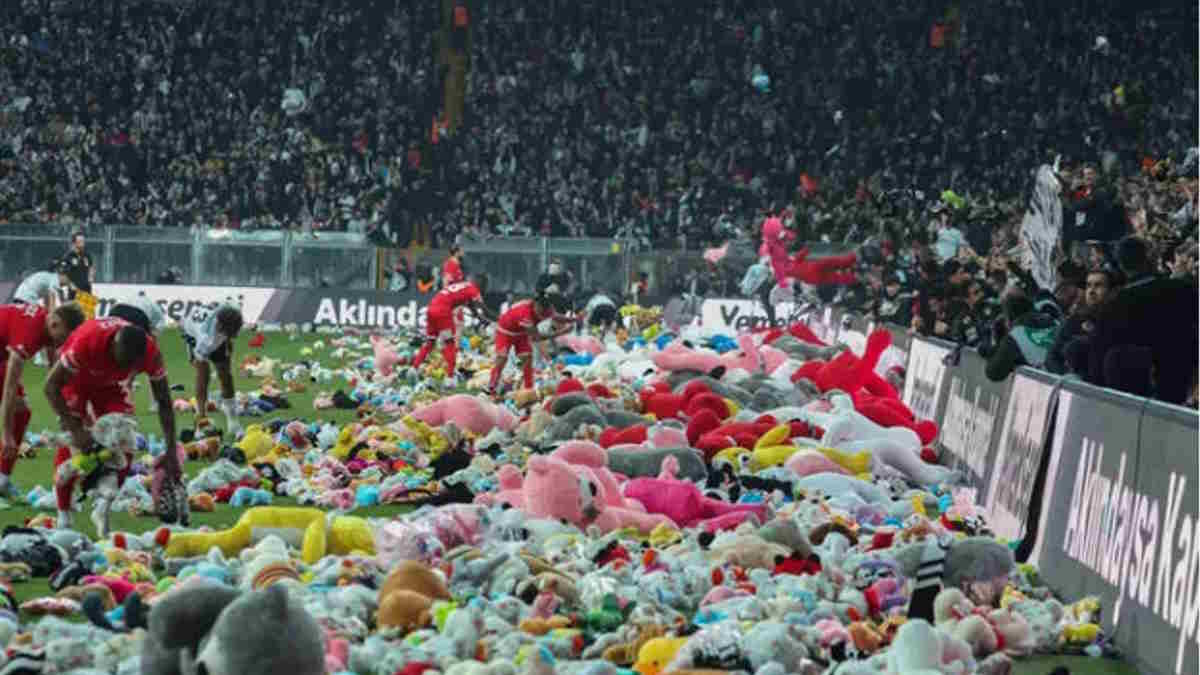 बीते दिनों तुर्की में आए भूकंप से पूरी दुनिया सहम उठी है। भूकंप की तबाही में तुर्की के अंदर ही 50 हजार से ज्यादा लोगों की मौत हो गई। पूरी दुनिया तुर्की की अपने-अपने तरीके से मदद कर रही है। इस बीच रविवार को इस्तांबुल फुटबॉल क्लब बेसिक्तास के फैंस ने वोडाफोन पार्क में खिलौनों की बौछार कर दी। मैच शुरू होने से पहले दर्शकों ने हजारों की संख्या में खिलौने मैदान पर फेंक दिए। दर्शकों ने ऐसा करके दुनिया को यह संदेश दिया किन इन मुश्किल हालात में हम प्रभावित परिवारों के बच्चों के साथ हैं और हम सब एकजुट हैं।