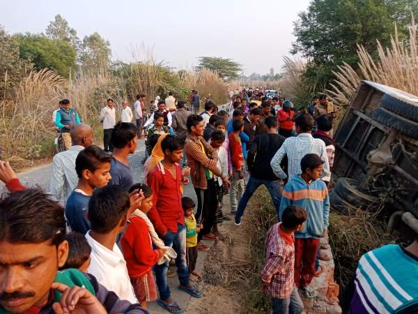 बस में औरतें, बच्चे व बूढ़े सवार थे। घायलों को सामुदायिक स्वास्थ्य केंद्र बल्दीराय ले जाया गया। जहां से बच्ची खुशी को जिला अस्पताल रेफर कर दिया गया।