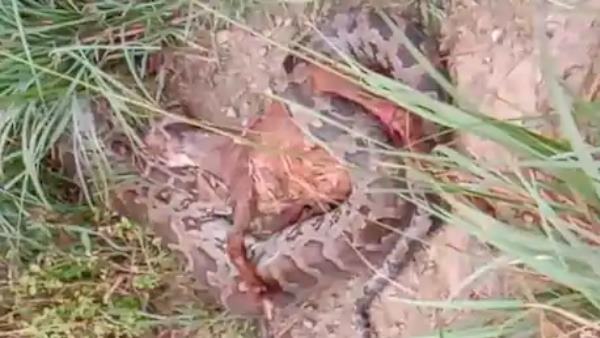 झाड़ियों के पीछे से आ रही थी अजीबोगरीब आवाजें, देखा तो जिंदा बकरी को निगल रहा था अजगर, VIDEO
