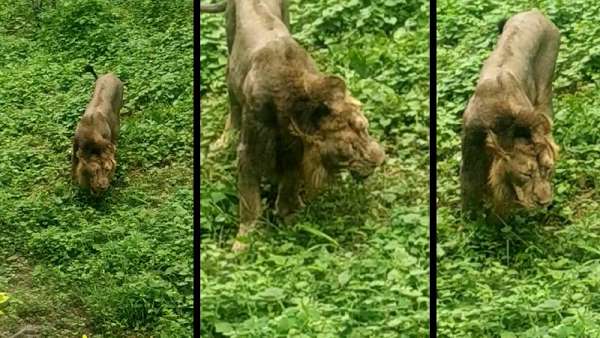गुजरात के जंगल में शेर को खानी पड़ गई घास, वीडियो वायरल होने पर वन्यजीव प्रेमियों ने दागे सवाल