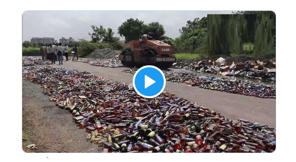 शराब की हजारों बोतलें गुजरात में रोलर से फोड़ी गईं, पुलिस ने कहा- अवैध तरीके से बेची जाती थीं