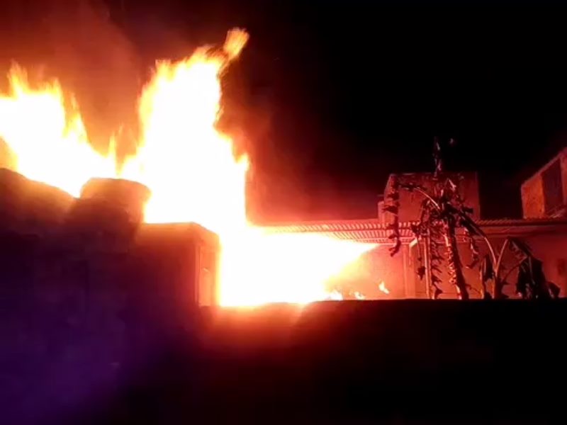 Udaipur News, उदयपुर। राजस्थान के उदयपुर जिले के भींडर कस्बे में होली दहन के बाद रामद्वारा के सामने एक पशु बाड़े में भीषण आग लग गई। अचानक से बाड़े में लगी आग से अफरा तफरी का माहौल हो गया।