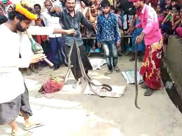 मामला तिर्वा तहसील के अहेर गांव का है। महेश गुप्ता पुत्र सियाराम अपने परिवार के साथ कच्चे घर में रहता है। बीते तीन दिन पहले घर में एक काला सांप दिखाई पड़ा था। जिसको ग्रामीणों ने पकड़कर लाठी-डंडों से मार डाला था। उसके बाद फिर एक सांप दिखाई पड़ने से परिजन चितिंत हो गए। बुधवार को परिजनों ने सपेरों को बुलवाया। जैसे ही सपेरों ने घर में जाकर अपनी बीन बजाई तो दो-तीन सांप इधर-उधर मडराने लगे।