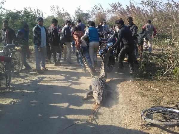 मैनपुरी में निकला मगरमच्छ तो देखिए गांव वालों ने उसके साथ क्या किया?