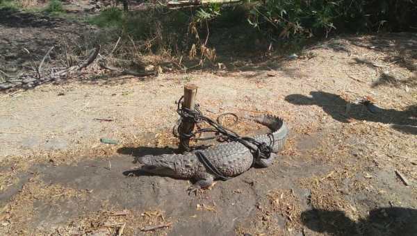 बड़ी मछली फंसने की सोच जब मछुआरे जाल को किनारे ले गये तो उसमें चार फीट लंबा मगरमच्छ फंसा देख डर गये। ग्रामीणों की मदद से मछुआरों ने मगरमच्छ को जाल से निकालकर पास के एक पेड़ में बांध दिया।