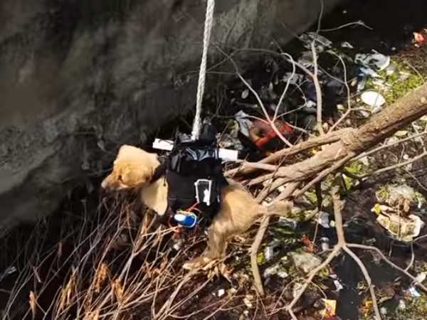 गहरे नाले में फंसे कुत्ते को ड्रोन और रोबोट की मदद से कैसे निकाला, देखिए वीडियो