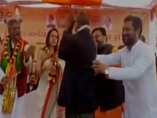 मथुरा। इन दिनों हेमा मालिनी उत्तर प्रदेश विधानसभा चुनाव के लिए भाजपा के प्रचार में लगी हुई हैं। शुक्रवार को उनकी मथुरा में रैली हुई, जिसमें भारी संख्या में लोग मौजूद थे। हेमा मालिनी से मिलने वहां एक शराबी युवक भी पहुंच गया था, जो उनसे मिलने सीधे मंच पर जा पहुंचा। हद तो तब हो गई जब मिलने के बाद भी वह मंच पर ही जमा रहा। अपने चहेती अभिनेत्री को सामने देखकर वह युवक लाख समझाने के बाद भी मंच से नीचे नहीं जा रहा था। जैसे-तैसे उसे समझा कर मंच से नीचे उतारा गया। हालांकि, इसके बाद उसे मंच से दूर कर दिया गया।