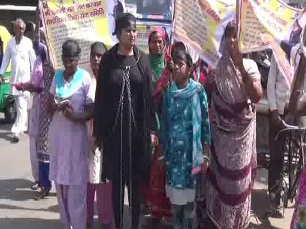 'नरेंद्र मोदी-महिला विरोधी' के बैनर लगाकर बेड़ियां पहन दिल्ली पैदल निकली ये महिला
