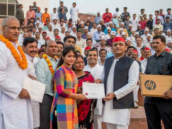 सपा सुप्रीमो ने सैफई के किसान बाजार में घंटाघर के पास रविवार शाम को इटावा की इंटर छात्रा सांभवी चौहान और औरैया की छात्रा आर्या त्रिपाठी को लैपटॉप वितरित किये। सपा सुप्रीमो ने छात्राओं के माता-पिता को भी सम्मानित किया। उन्होंने बताया कि इसी के तहत हम लोगों ने सीतापुर, बाराबंकी, लखनऊ में जिला टॉपर छात्रों को लैपटॉप बांटे है।