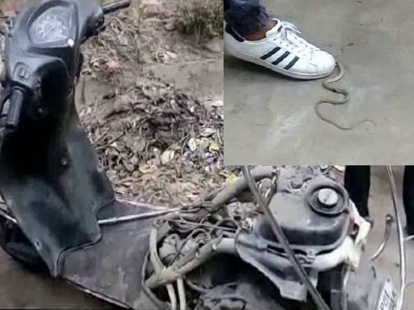 स्कूटी में सांप घुसने की जानकारी मिलते ही वहां तमाशबीनों की भीड़ लग गई। सांप से डर रहे आसपास के लोगों में किसी की हिम्मत नहीं हुई कि वह सांप को गाड़ी से भगा सके जिसके बाद स्कूटी खोलने के लिए एक मेकैनिक बुलाया गया। मैकेनिक ने स्कूटी की सीट वाला पार्ट जहाँ सांप घुसा था, उसको खोल कर अलग कर दिया। सांप अभी भी सीट के नीचे हिस्से में मौजूद था। वहां मौजूद किसी व्यक्ति ने लकड़ी से सांप को बाहर निकाला। सांप कूद कर सड़क पर भागने लगा जिसे वहां मौजूद एक व्यक्ति ने अपने जूते से उसका सिर को कुचल दिया। सिर कुचलने से सांप मर गया।