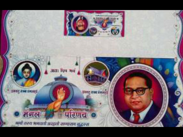 इलाहाबाद के एक दलित परिवार ने कुछ नया करते हुए अपनी बेटी की शादी का जो आमंत्रण कार्ड छपवाया उसमें भगवान गणेश की तस्वीर की जगह बाबा साहब भीमराव अम्बेडकर की तस्वीर लगवाई। शादी के कार्ड के पहले पन्ने पर भगवान की जगह भीमराव अंबेडकर की फोटो लगी है और श्लोक की जगह बुद्धवाणी लिखवाई।