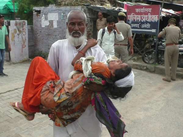 दरअसल तस्वीरों में बुजुर्ग गोद में महिला को उठाकर रोते हुए दिखाई दे रहा है। ये महिला कोई और नहीं बल्कि उसी बुजुर्ग की पत्नी है जिसे लेकर वो अधिकारियों के ऑफिस के चक्कर काट रहा था। बुजुर्ग व उसकी पत्नी को गाँव के दबंग लोगों ने मारकर लहूलुहान किया था। लेकिन इसकी सुनने वाला कोई नहीं है। आपको बता दें कि मोहनगंज थाना क्षेत्र के पूरे शुकुलन भगीरथ गाँव में मुस्लिम समुदाय के कुछ दबंगों ने मुश्ताक की पत्नी और उनके परिवार के लोगों पर जमकर कहर ढहाया था। जिसमें मुश्ताक की पत्नी सफिया बनो के सर पर कुल्हाड़ी से वार कर बुरी तरह घायल कर दिया था, जिसमें सफिया की हालत गम्भीर हो गई थी।