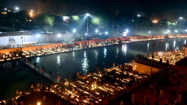 अयोध्या, 04 नवंबर: उत्तर प्रदेश के अयोध्या में भव्य दीपोत्सव कार्यक्रम की शुरुआत हो चुकी है। बुधवार यानी छोटी दीपावली की शाम अयोध्या में 12 लाख दीपक जलाकर विश्व रिकॉर्ड कायम किया गया। 12 लाख दीयों में राम की पैड़ी पर 9 लाख और अयोध्या के बाकी हिस्सों में 3 लाख दीपक प्रज्जवलित हुए। यूपी के मुख्यमंत्री योगी आदित्यनाथ, राज्यपाल आनंदीबेन पटेल और केंद्रीय मंत्री जी किशन रेड्डी इस कार्यक्रम में मौजूद रहे।