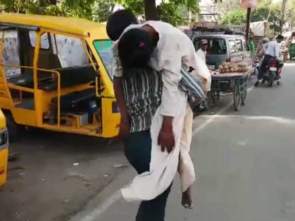 यूपी: अस्पताल से नहीं मिला शव वाहन, पत्नी के शव को कंधे पर रखकर ले गया पति