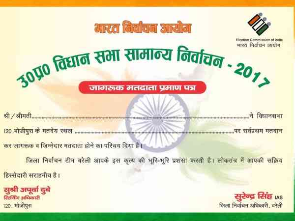 जो भी मतदाता मतदान के दिन अपने बूथ पर पहुंच कर सबसे पहले वोट डालेगा उसे जिलाधिकारी द्वारा जागरूक मतदाता का प्रमाण पत्र दिया जायेगा और ये सुविधा बरेली जिले के सभी 3239 बूथों पर उपलब्ध होगी।