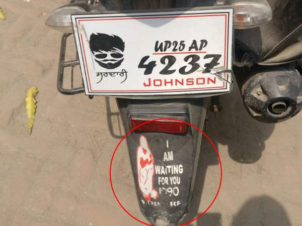 पुलिस ने एक बाइक को जब्त कर उस पर सवार लड़को के खिलाफ कानूनी कार्रवाई कर दी। पुलिस के हिसाब से लड़कों की गलती यह थी कि उन्होंने बाइक पर कुछ खास लिखवा रखा था।