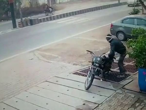 ऑफिस के सामने से बाइक कैसे ले गया चोर, इस वीडियो में देखिए