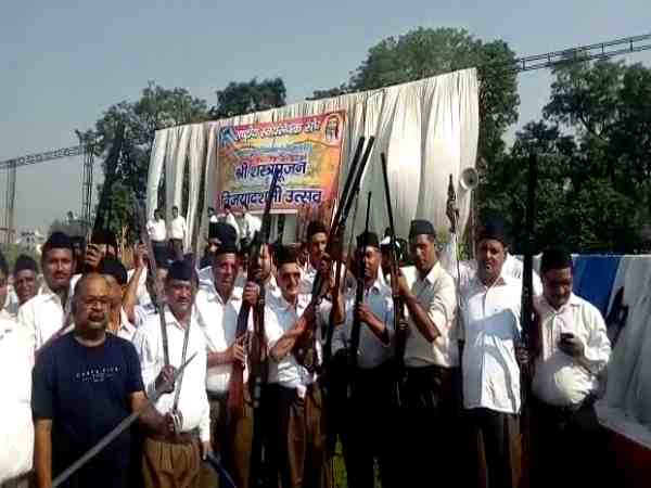 फर्रुखाबाद। यूपी के फर्रुखाबाद में हर वर्ष की भांति इस वर्ष भी स्वयं सेवक संघ के द्वारा दशहरा मनाया गया। इस दौरान शस्त्र पूजा के साथ संघ का स्थापना दिवस भी मनाया गया। संघ के सभी सदस्यों ने एकत्रित होकर अपनी शक्ति का प्रदर्शन किया। इस दौरान कार्यक्रम में संघ कार्यकर्ताओं व बीजेपी नेताओं ने जमकर फायरिंग भी की। शस्त्र पूजन मे संघ के कार्यकर्ताओं सहित भोजपुर विधायक नागेंद्र सिंह मौजूद रहे। इस समय फर्रुखाबाद में धारा १४४ लगी है। रोक के बावजूद कार्यकर्ताओं ने जमकर फायरिंग की।