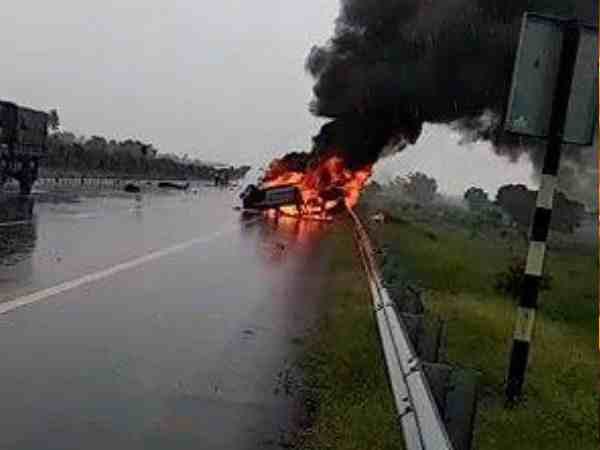 आगरा-लखनऊ एक्सप्रेस वे पर चलती कार अचानक बन गई आग का गोला