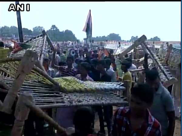 राहुल की सभा समाप्त होने से पहले ही लोगों ने खाट लूटना शुरू किया और देखते ही देखते मिनटों में खाट लुट गईं। लोग एक साथ दो-दो खाट लेकर भाग रहे थे।