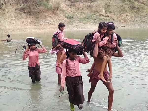 नदी के बीच होकर जाना पड़ता है स्कूल