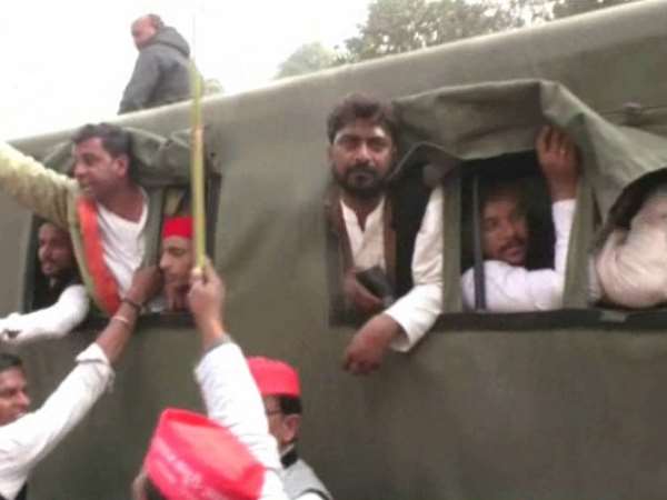 योगी सरकार के खिलाफ सपाइयों का हल्ला बोल, पुलिसकर्मियों से झड़प