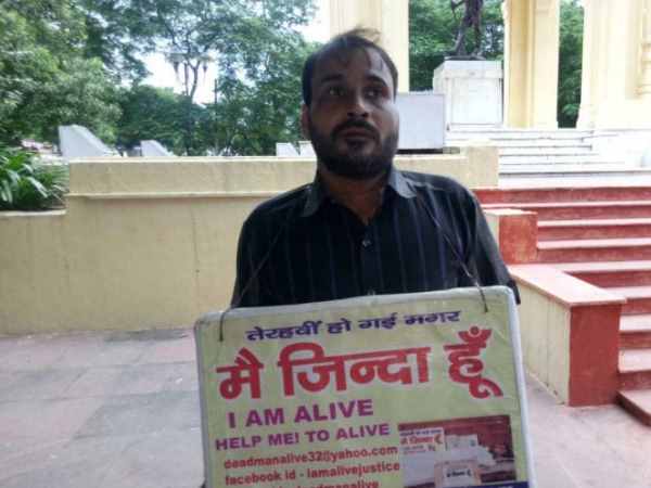लखनऊ। ऐसा अक्सर फिल्मों में देखा जाता है कि किसी इंसान को गलती से मृत घोषित कर दिया जाता है जबकि वह जिंदा होता है। लेकिन ऐसा सिर्फ रील लाइफ में ही नहीं बल्कि रियल लाइफ में भी होता है। राजधानी लखनऊ में 13 सालों से खुद को जिंदा साबित करने के लिए एक शख्स कड़ी मशक्कत करनी पड़ रही है।