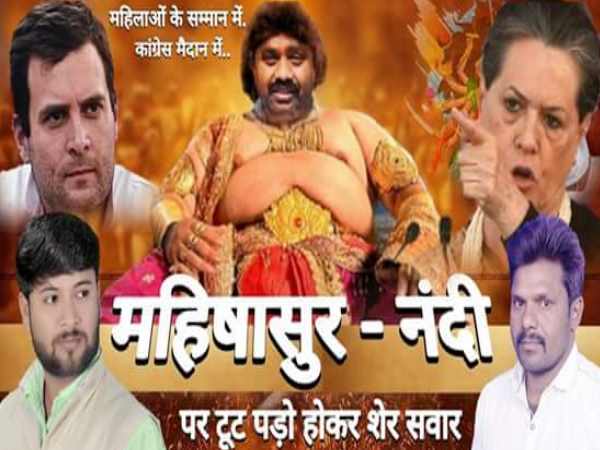 सपा-बसपा के बाद कांग्रेस ने भी नंदी पर बोला हमला, महिषासुर बनाकर जारी किया पोस्टर