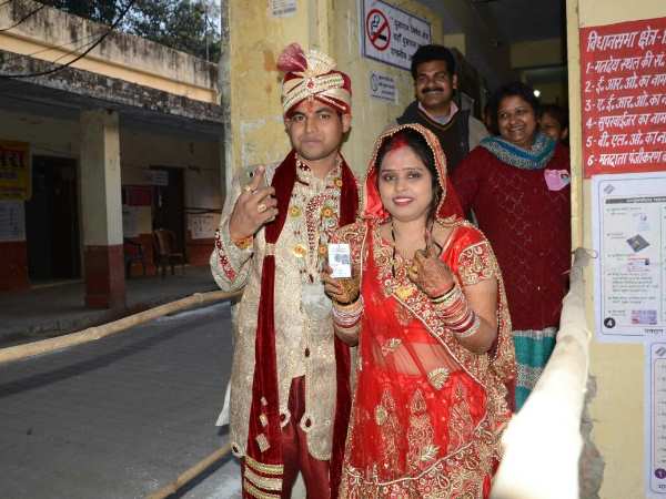 बरेली में एक जोड़े ने मतदान कर अपनी शादीशुदा जिंदगी की शुरुआत की। सात फेरे लेने के बाद सबसे पहले उन्होंने वोट डालने के काम किया। उसके बाद दुल्हन की विदाई हुई।