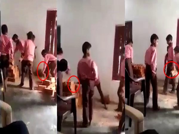 VIDEO: छात्रों से मजदूरी कराता स्कूल प्रबंधन, परीक्षा देने गए बच्चों से उठवाईं ईंटें