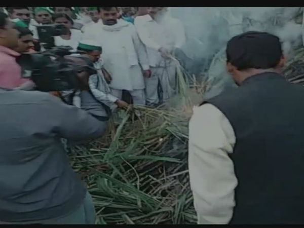 लखनऊ। उत्तर प्रदेश में योगी सरकार ने जिस तरह से गन्ने का समर्थन मूल्य सिर्फ 10 रुपए प्रति क्विंतल बढ़ाया है उसे लेकर आखिरकार किसानों का गुस्सा फूट गया है। किसानों ने योगी सरकार के फैसले के खिलाफ लखनऊ में विरोध प्रदर्शन शुरू कर दिया है। भारतीय किसान यूनियन के तमाम नेताओं ने लखनऊ में गन्ने को जलाकर अपना विरोध दर्ज कराया। यूपी विधानसभा के बाहर किसानों ने गन्ने को जलाकर प्रदेश सरकार से फसल की न्यूनतम कीमत को बढ़ाने की मांग की है। इस मौके पर बड़ी संख्या में किसानों ने सड़क पर बैठकर प्रदर्शन किया।