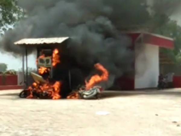 पेट्रोल पंप पर लगी आग इतनी भीषण थी, आसपास के सभी लोग जान बचाने के लिए दूर भागे। इसकी चपेट में आने से दो बाइकें खाक हो गईं।