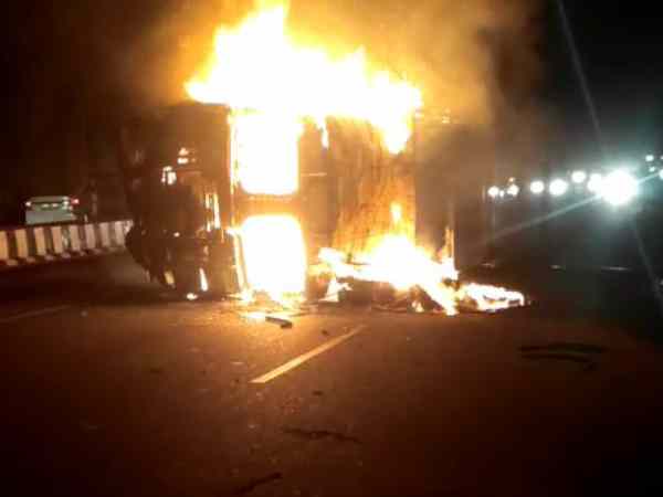 कार और ऑटो के परखच्चे उड़ गए। इस हादसे से ट्रक धू-धूकर जल गया और आस-पास मौजूद लोगों में अफरातफरी का माहौल बन गया।