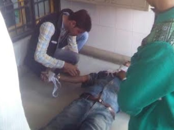 मंगलवार को कुछ नशेड़ियों के हमले के चलते घायल व्यक्ति को हरदोई के जिला अस्पताल में ले जाया गया जहां घायल को बेड पर लिटाने के बजाय जमीन पर ही लिटाकर उसका इलाज किया गया।