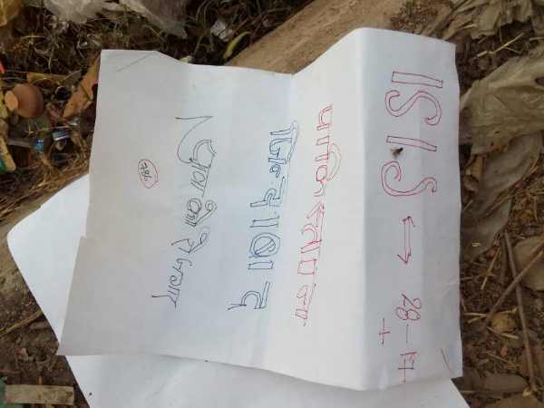 वाराणसी। उत्तर प्रदेश में वाराणसी के मिर्जामुराद थाना क्षेत्र में आईएसआईएस के नाम से लिखा लेटर मिला है। इस लेटर में जहाँ पाकिस्तान जिन्दाबाद के नारे लिखे हुए हैं वहीं आईएसआईएस का साथ देने वाले युवाओं को रोजगार देने का लालच भी दिया गया है।