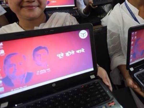 यूपी में चुनाव आचार संहिता को ताक पर रखकर 'अखिलेश लैपटॉप' का वितरण