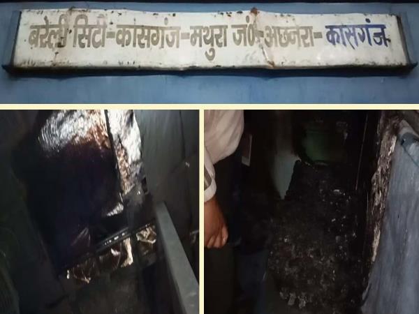 VIDEO: मथुरा-कासगंज पैसेजर ट्रेन में लगी आग, एक बोगी जलकर खाक