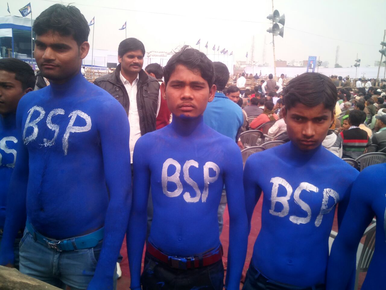 बरेली। बीएसपी सुप्रीमो मायावती की रैली ने जनता को कितना उत्साहित किया यह तो शायद आने वाला वक्त ही बताए लेकिन यह बात तय है कि मायावती का वोट बैंक भी कम नहीं है। पार्टी के समर्थन में मायावती के लिए उनका तबका भी रैली में बढ़-चढ़कर हिस्सा ले रहा है। मायावती समर्थक न सिर्फ रैली में अपनी मौजूदगी दर्ज करा रहा है बल्कि समर्थन में अपने शरीर पर पार्टी का लोगो भी प्रिंट कर रहा है।