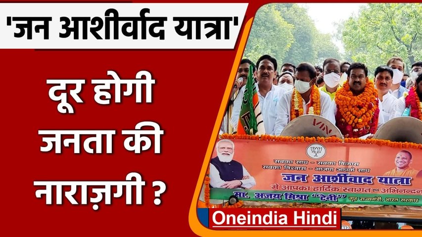 लखनऊ, 16 अगस्त: उत्तर प्रदेश में अगले साल होने वाले विधानसभा चुनाव को देखते हुए बीजेपी यूपी में जन आशीर्वाद यात्रा चला रही है। इस यात्रा में यूपी के 32 लोकसभा क्षेत्रों और 121 विधानसभा क्षेत्रों को कवर करने का प्लान तैयार किया गया है। इस यात्रा का रोडमैप इस तरीके से तैयार किया गया है कि ज्यादा से ज्यादा लोगों तक पहुंचा जा सके। हालांकि आधिकारिक तौर पर तो संगठन के पदाधिकारी दावा कर रहे हैं कि यह इस यात्रा के माध्यम से केवल सरकारी योजनाओं को जन जन तक पहुंचाना ही लक्ष्य है लेकिन केंद्र के सात मंत्रियों को यूपी में उतारने के पीछे एक गणित यह भी है कि इन मंत्रियों को उन इलाकों में घुमाया जाए जहां उनके समाज के लोग ज्यादा हों ताकि लोगों की नाराजगी दूर हो सके।