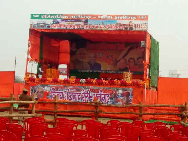 पीएम मोदी जिस मंच से लोगों को संबोधित करेंगे उसकी उंचाई तकरीबन 22 फुट है, इसके साथ ही पीएम की रैली के मद्देनजर सुरक्षा के पुख्ता इंतजाम किए गए हैं। मंच के सामने दो ब्लॉक बनाए गए हैं जहां एक तरफ मीडिया गैलरी है तो दूसरी तरफ वीआईपी गैलरी है। पीएम की रैली में तमाम केंद्रीय मंत्रियों व प्रदेश के नेता भी हिस्सा लेने पहुंचेंगे। आखिरी बार जब प्रधानमंत्री मोदी अलीगढ़ आए थे तो वह गुजरात के मुख्यमंत्री थे और लोकसभा चुनाव के लिए प्रचार कर रहे थे।
