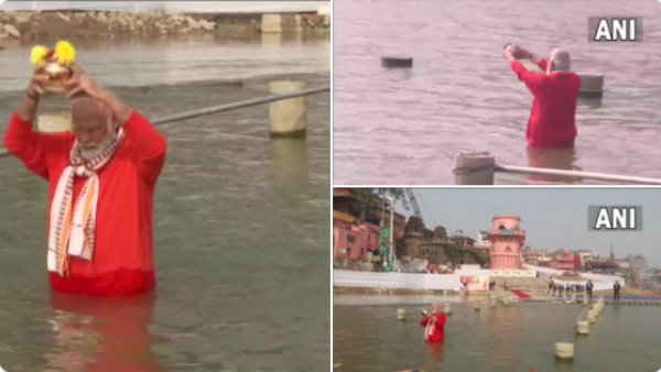 वाराणसी, 13 दिसंबर: प्रधानमंत्री नरेंद्र मोदी ने सोमवार को यूपी में अपने संसदीय क्षेत्र वाराणसी में करीब 339 करोड़ रुपये की लागत से तैयार हुए काशी विश्वनाथ धाम कॉरिडोर के पहले फेज का उद्घाटन किया। इससे पहले पीएम मोदी ने 'काशी के कोतवाल' कहे जाने वाले प्राचीन काल भैरव मंदिर में दर्शन किए और गंगा नदी में स्नान भी किया। प्रधानमंत्री नरेंद्र मोदी ने उद्घाटन से पहले काशी विश्वनाथ धाम कॉरिडोर के निर्माण में काम करने वाले श्रमिकों पर फूल बरसाकर उनका अभिवादन किया। पढ़िए, पीएम मोदी के वाराणसी दौरे के लाइव अपडेट।