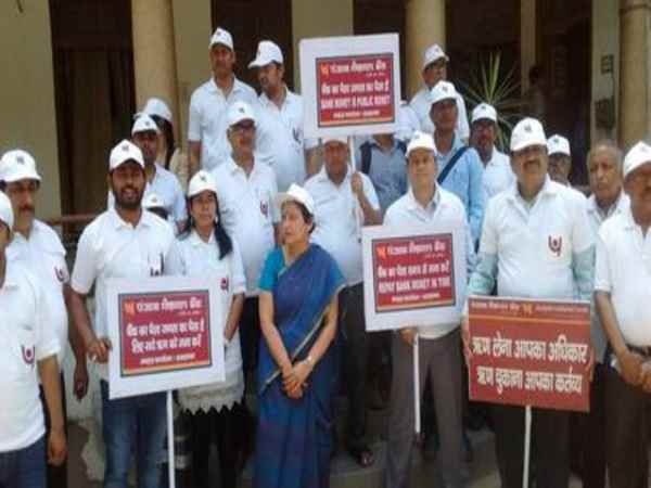 बीजेपी विधायक हर्षवर्धन बाजपेई के पिता से 56 करोड़ का कर्ज वसूलने के लिए पंजाब नेशनल बैंक के कर्मियों ने आज उनके घर के सामने गांधीवादी तरीके से प्रदर्शन किया।