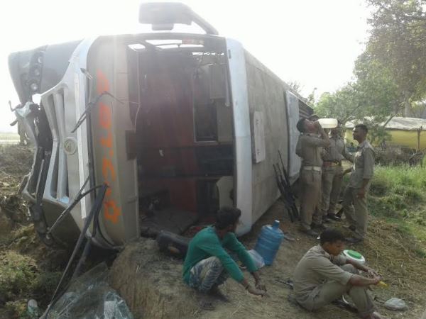 PICS: फॉयर ट्रेनिंग से लौट रहे पुलिसकर्मियों की बस पलटी, 15 जवान घायल