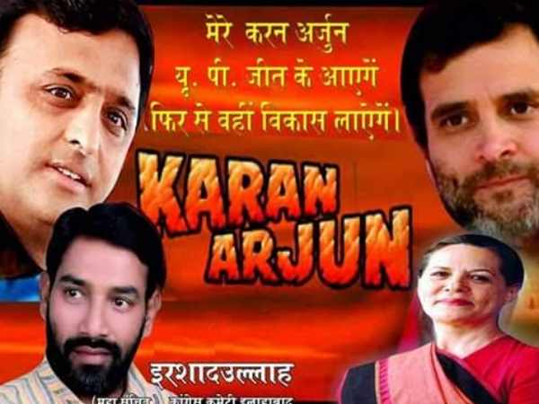 इलाहाबाद हमेशा पोस्टर की वजह से चर्चा में रहता है। अब एक कांग्रेस नेता ने राहुल-अखिलेश को सोनिया गांंधी का करन-अर्जुन बताकर एक पोस्टर जारी किया है।