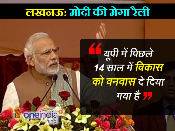 प्रधानमंत्री नरेंद्र मोदी ने कहा कि कुछ लोग कहते हैं कि बीजेपी का यूपी में 14 साल का वनवास खत्म होगा, मुद्दा बीजेपी के वनवास का नहीं है। यूपी में पिछले 14 साल में विकास का वनवास हो गया।