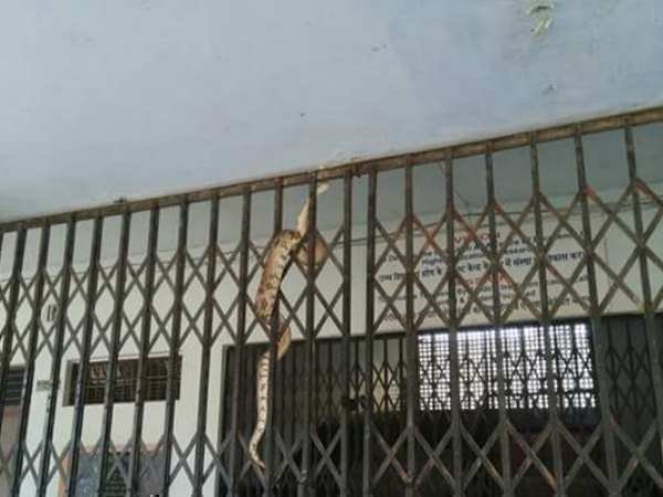 इलाहाबाद के कॉलेज में दूसरे दिन फिर निकला अजगर, गेट पर चढ़ा