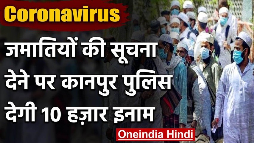 कानपुर। उत्तर प्रदेश में कानपुर पुलिस ने घोषणा की है कि जो लोग जमातियों के बारे में सूचना देंगे, उन्हें 10 हजार रुपए का इनाम दिया जाएगा। इस बारे में खुद आईजी मोहित अग्रवाल ने लोगों से आग्रह किया। मोहित अग्रवाल ने कहा, "कोरोना से संक्रमितों की संख्या तेजी से बढ़ रही है। मतलब, जमाती कहीं छुपे हैं और अपनी जांच नहीं करा रहे, उनके कारण लगातार संक्रमण के नए मामले सामने आ रहे हैं। ऐसे में जो लोग उनके बारे में सूचना देंगे, वो पुरस्कृत किए जाएंगे।'